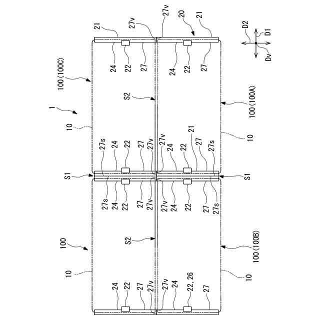 前記支持構造体の各々の前記下部延在部における前記幅方向の内側の縁部は、前記接続部における前記幅方向の内側を向く内向面に対し、前記幅方向の外側に偏って配置されている