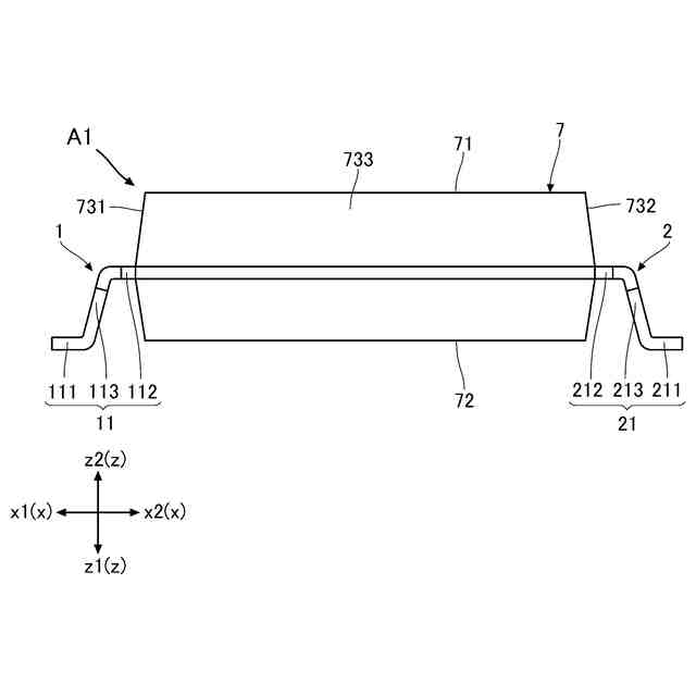前記厚さ方向および前記第1方向に直交する第2方向において、前記第1アウター部の中央は、前記第1ダイパッド部の中央と同じ位置または前記第1ダイパッド部の中央よりも前記第2方向の一方側に位置しており、
