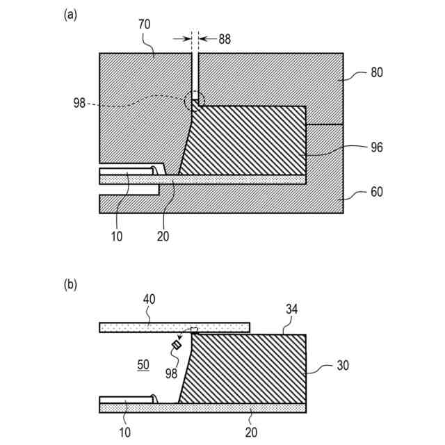 また、本明細書の他の一開示によれば、半導体素子が設けられた基板の上に、前記半導体素子の周囲を囲むように枠体を形成する工程と、前記半導体素子が設けられた空間を塞ぐように前記枠体に蓋体を固定する工程と、を有する電子部品の製造方法であって、前記枠体を形成する工程では、前記基板を設置する第1金型と、前記枠体の内側面を成形するための第2金型と、前記枠体の前記蓋体と対向する面を成形するための第3金型と、を用いて射出成形により前記枠体を形成し、前記第2金型と前記第3金型とは、分離しており、前記第1金型との間の距離を互いに独立して変えられるように構成されており、前記第3金型は、前記蓋体が接合される面を成形するための枠状の第1領域と、前記第1領域よりも内側に位置し、前記第1領域よりも前記第1金型の側に突出する凸部を有する枠状の第2領域と、を有する電子部品の製造方法が提供される。