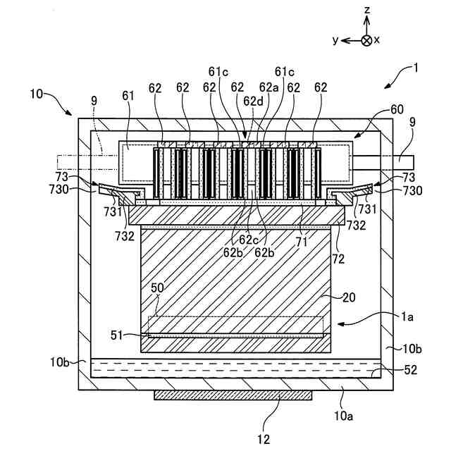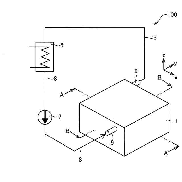 (1)本発明の一形態によれば、二次電池が提供される。この二次電池は、ケースと、前記ケースの内側に収容され、水平方向に沿って並んで配置される複数の電池セルと、前記電池セルを冷却する熱媒体と、気体の熱媒体が流通する気体流通部であって、互いに隣り合う2つの前記電池セルの間に配置される気体流通部と、多孔体により形成され、液体の熱媒体が流通する液体流通部であって、前記気体流通部と前記電池セルとの間に配置され、前記電池セルの表面と接している液体流通部と、前記気体流通部の鉛直方向上方側に配置され、前記気体流通部から排出される気体の熱媒体を液化する熱交換部と、を備える。