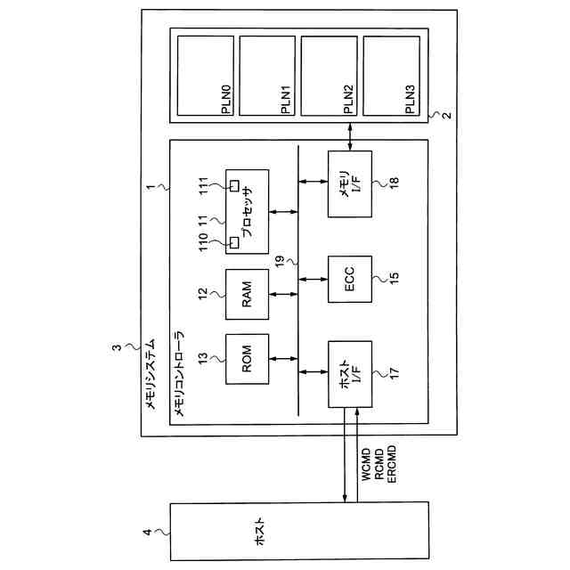メモリシステム3はホスト4と接続されている。ホスト4は、例えば、パーソナルコンピュータ、携帯端末などの電子機器である。ホスト4は、メモリシステム3を制御する。ホスト4は、例えば、プロセッサ及びメモリを備える。プロセッサは、メモリにロードされる様々なプログラムを実行するように構成されている。様々なプログラムは、例えば、オペレーティングシステム(Operatig System、OS)に実装されたファイルシステム及びアプリケーション(Application)などを含む。アプリケーションは、例えば、OSを介してメモリシステム3とデータ(実データ)のやり取りを行うように構成されている。データ(実データ)はファイルデータとして保存される。