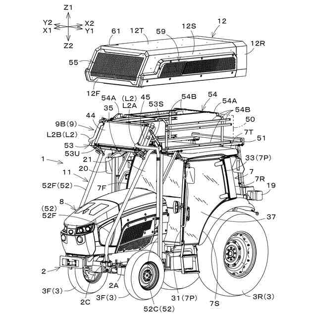 本発明の実施形態について、図面を参照しながら説明する。図1~図8は、本発明の一実施形態に係る作業車両1である。本実施形態の作業車両1は、トラクタであり、耕運機、ベーラなど、主に農作業の目的および用途に応じた作業装置(インプルメント)を連結して使用される。本実施形態の作業車両1は、燃料電池で発生した電力を用いて駆動するFCV(Fuel Cell Vehicle)の一種である。尚、本発明に係る作業車両1は、トラクタに限定されない。例えば、本発明に係る作業車両1は、トラクタ以外の農業機械、建設機械、ユーティリティビークル等であってもよい。