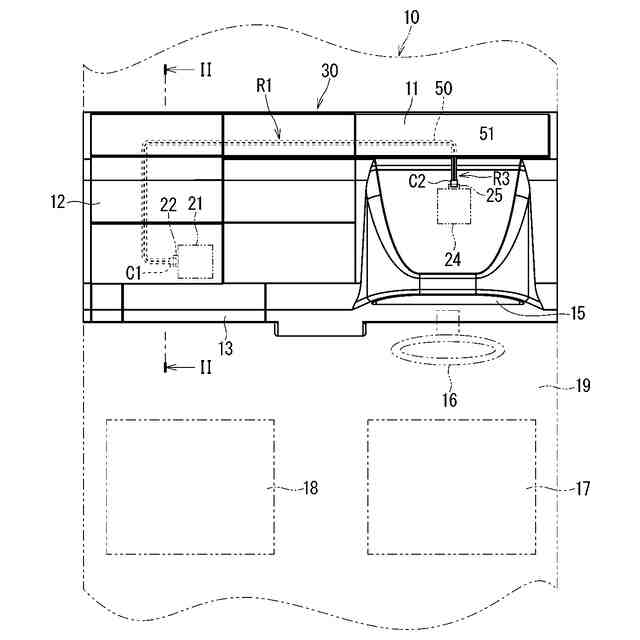 図1は実施形態1にかかるワイヤハーネスの配索構造を示す平面図である。