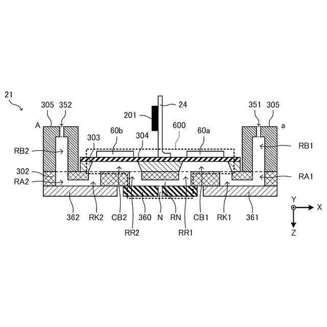 前記第2圧力室の体積は、前記第2圧電素子の変位に応じて変化する、