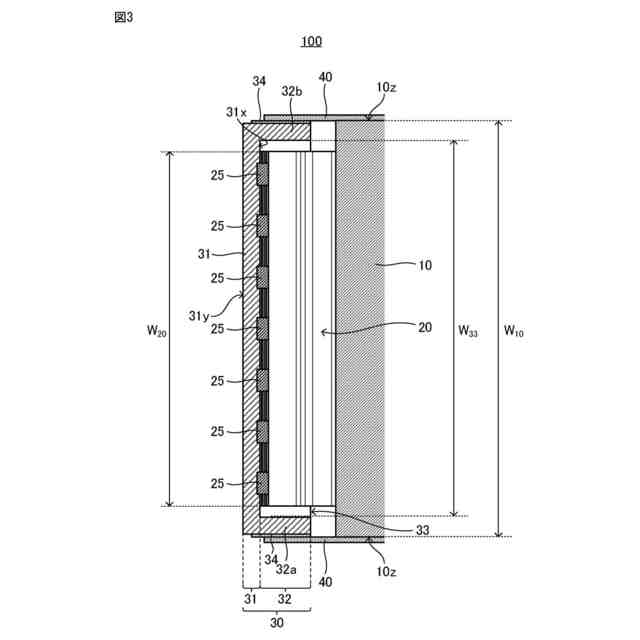電池100は、電極積層体10にて生じた電力を、集電部20及び端子30を介して、外部機器等へと供給する。すなわち、電極積層体10は、電池100の発電要素として機能する。