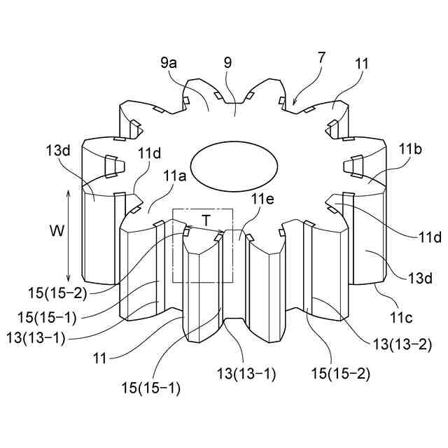 第3の本発明は、第2の本発明において、前記凹溝部は、歯の一端面から他端面にわたって歯幅方向に連続して凹設された蟻溝形状を有し、