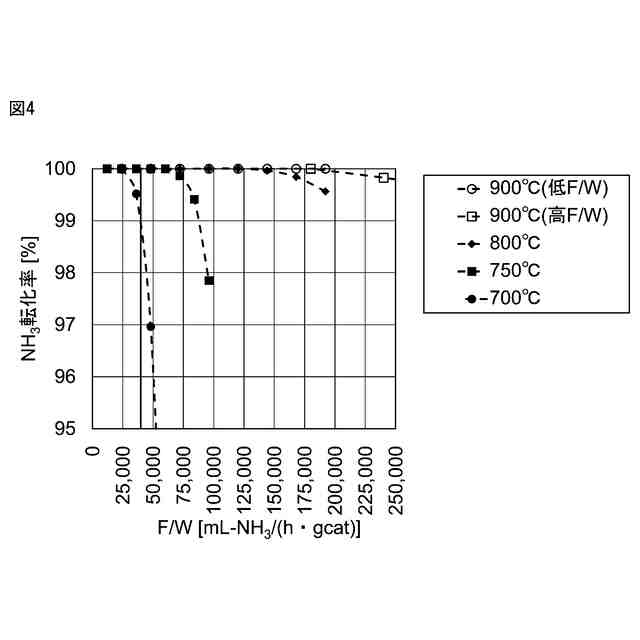 【解決手段】アンモニアからの水素の製造方法であって、アンモニアガスを反応器に導入し、触媒の存在下で分解して水素ガスを製造することを含み、反応器における触媒層の出口ガス温度が750℃以上であり、アンモニアガスの流量Fと前記触媒の質量Wとの比F/Wが40,000mL-NH
