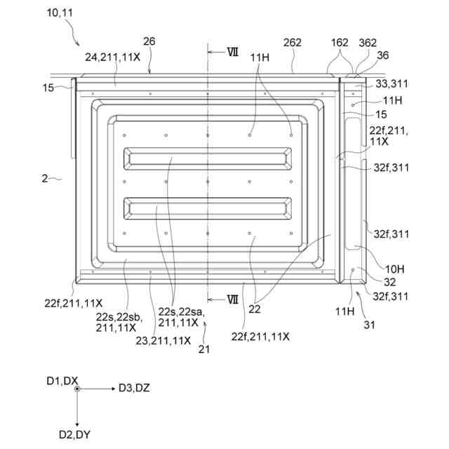 [2] 前記底板部は、第1面及び前記第1面よりも下方に位置する第2面を含み、前記第1面において前記蓄電素子ユニットに接続し、前記第2面において前記床部に接続する、[1]の支持部材。