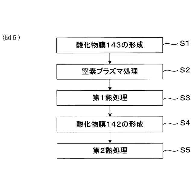 からなる第1酸化膜を形成する。次に、第1酸化膜に窒素プラズマを照射する。第1酸化膜は窒化し、半導体層側から順にSiON、SiNの積層を形成する。その後、第1熱処理を行う。次に、SiN上にSiO