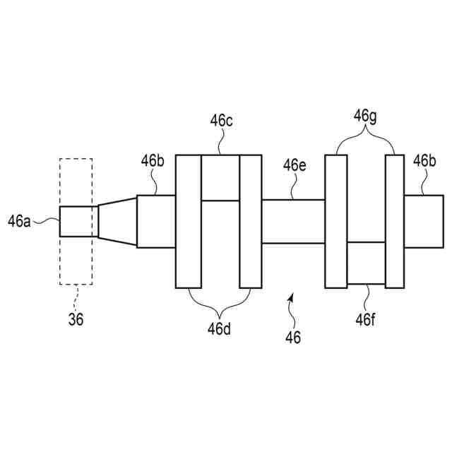 実施形態に係るエアコンプレッサのクランクケース内に配置されるクランクシャフトを示す概略図。