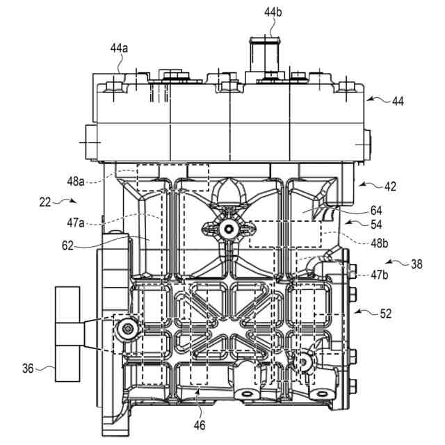 以下、図面を参照しながら、本実施形態に係る車両10の内燃機関アセンブリ12の負荷装置アセンブリ22について説明する。なお、各図における各部材の相対的な大きさは、概略的なものであり、実際のものとは異なることがある。