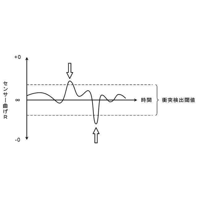 曲がったときに抵抗値が増加する前記衝突検出センサーを複数備え、