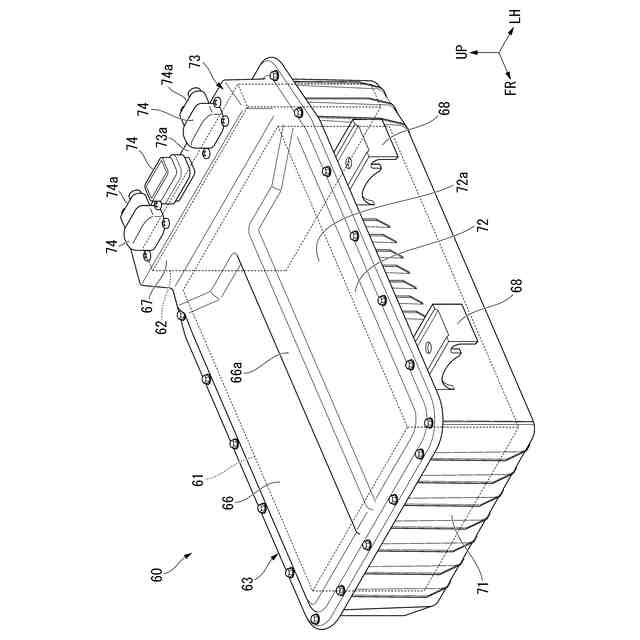 【解決手段】自動二輪車は、車体フレーム20と、走行用のモータと、運転者が足を載せるフラットフロアと、フラットフロアの下方に配置され、モータに供給される電力を蓄電する蓄電部を収容したバッテリケース63と、を備える。バッテリケース63は、バッテリケース63の上面に設けられ、上方に隆起した凸部73と、凸部73の頂面73aに配置されたコネクタ部74と、を有する。車体フレーム20は、平面視で凸部73に上方から重なるリアクロスフレーム27を有する。