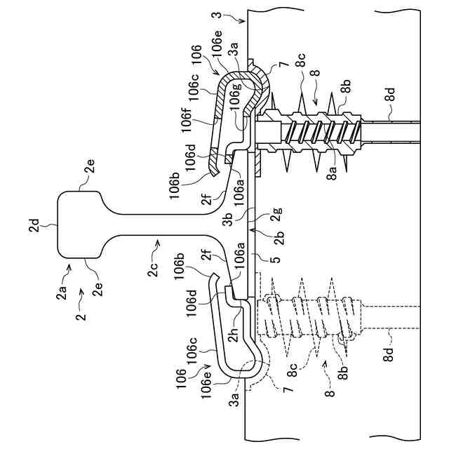 一方、無螺締式の採用にあたり、専用の締結機構を設けたレール支承体(PCまくらぎ等)への交換が必須で、導入コストが高いことが普及を阻む要因となっている。例えば、従来技術1の螺締式のレール締結装置を従来技術2の線ばね形レール締結装置に変更する場合には、螺締式のレール締結装置の埋込栓を、線ばね形レール締結装置のショルダに変更する必要がある。この場合、埋込栓が埋め込まれた既設のPCまくらぎを、ショルダが埋め込まれたPCまくらぎに交換する必要があり、交換作業に手間がかかるとともにコストが高くなってしまう課題がある。