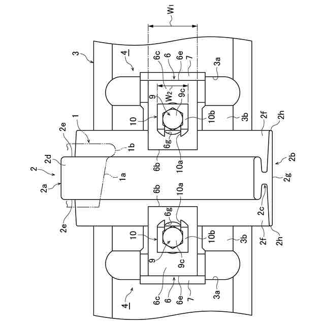 従来技術3は、レール締結装置を施工するときに、軸部材の頭部とばね部材との間に枠部材を挿入する必要がある。しかし、従来技術3では、軸部材の頭部とばね部材との間に枠部材を挿入するときに、ばね部材の復元力に抗してこれらの間に枠部材を挿入するためには過大な力が必要となり、作業に手間がかかる問題点がある。