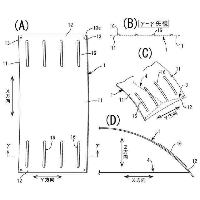 金属製薄板の長方形主板の長辺を長手方向と短辺を幅方向とし、対向するそれぞれの両該短辺箇所間には緊張紐状物が結ばれてなり、