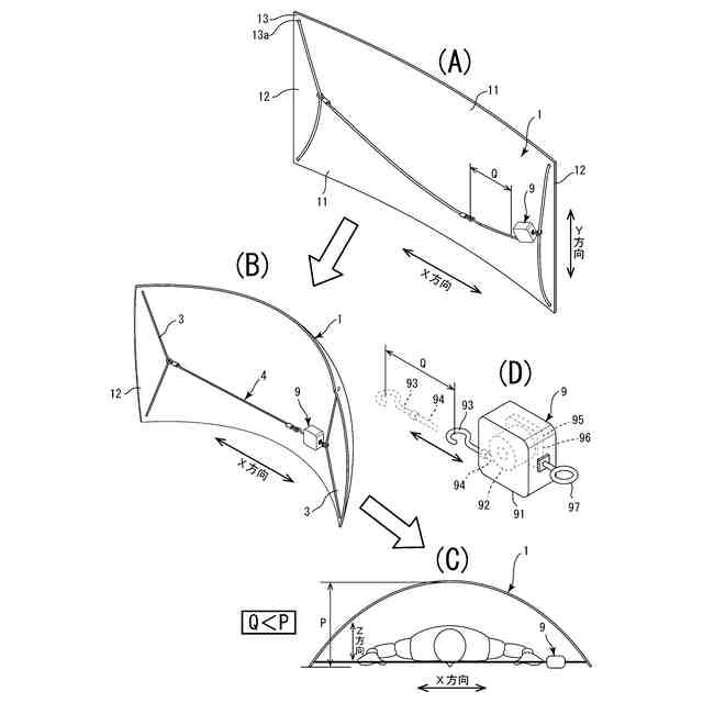 そこで、日常時(通常時)にはシェルターとしてではなく、邪魔にならないでいて、いざという時の大地震の時のみシェルターとしての役割を成すものが望まれているのに、このような要望に応えられる製品等は皆無であったが、このように日常時のときの状態と大地震時の状態の両目的を、地震大国日本でも要望はされ、且つ望まれていた。このため本発明が解決しようとする課題(技術的課題又は目的等)は、日常時のときに邪魔にならずに、大地震時ときのみ身体を保護するシェルターとしての役割を果たし、且つ実現することである。