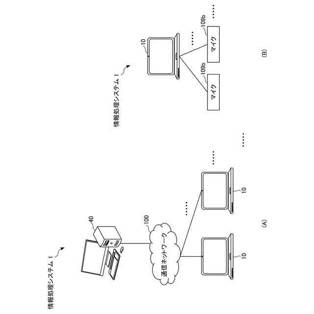 以下、図面に基づいて本発明の実施の形態を説明する。本実施の形態では、会議を集会の一例として説明するが、例えば、研修や授業等、会議以外の形態の集会に対しても本実施の形態は有効である。図1は、第1の実施の形態における情報処理システム1の構成例を示す図である。図1には、情報処理システム1に関して、(A)及び(B)の2つの構成例が示されている。