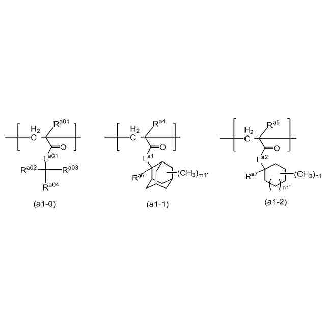 -で置き換わる場合、各基において同様の例を適用するものとし、置き換わる前の炭素数を炭化水素基等の炭素数とする。「組み合わせた基」とは、例示した基を2種以上結合させた基を意味し、それら基の価数は結合形態によって適宜変更してもよい。「由来する」又は「誘導される」とは、その分子中に含まれる重合性C=C結合が重合により-C-C-基(単結合)となることを指す。立体異性体が存在する場合は、全ての立体異性体を含む。各基は、置換基の数等によって、その基に含まれる任意の位置及び数の水素原子が結合手に置き換わることがある。置換基における炭素数は、被置換基の炭素数には含めない。「酸不安定基」とは、酸(例えば、トリフルオロメタンスルホン酸等)と接触すると、脱離基が脱離して、親水性基(例えば、ヒドロキシ基又はカルボキシ基等)を形成する基を意味する。「塩基不安定基」とは、塩基(例えば、トリメチルアミン、テトラメチルアンモニウムヒドロキシド等)と接触すると、脱離基が脱離して、親水性基(例えば、カルボキシ基又はヒドロキシ基等)を形成する基を意味する。