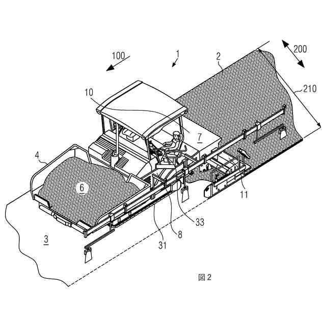 道路舗装機はアスファルトなどの舗装材料から舗装層を形成するよう設計されており、一般に、シャーシと、材料ホッパー、スクリード、縦方向搬送装置及び交差方向分配機構などのシャーシ上に配置された作業用集合体とを備える。