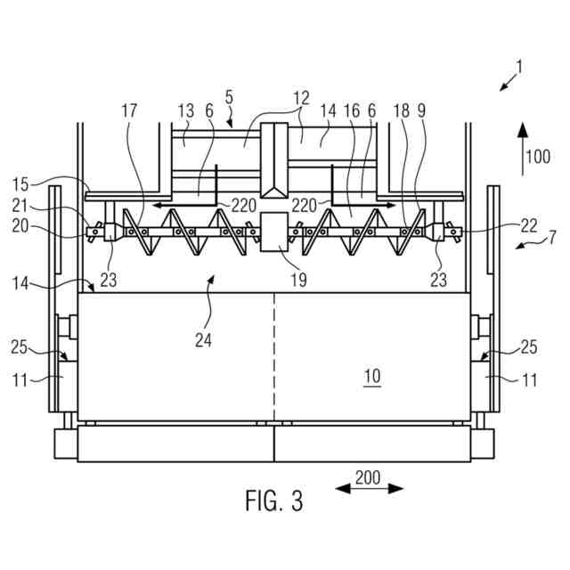 進行方向は、舗装材料の舗装中の道路舗装機の進行方向に相当してよく、舗装方向とも称される。進行方向という用語と舗装方向という用語は、本出願では特に同義語として用いられている。