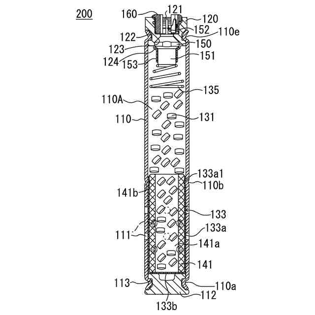 燃焼することによってガスを発生させるガス発生剤が装填され、前記ガスが通過する筒状のフィルタを内部に含み、前記フィルタに対応する位置に前記ガスを噴出するガス噴出口が形成されている長尺筒状のハウジングと、