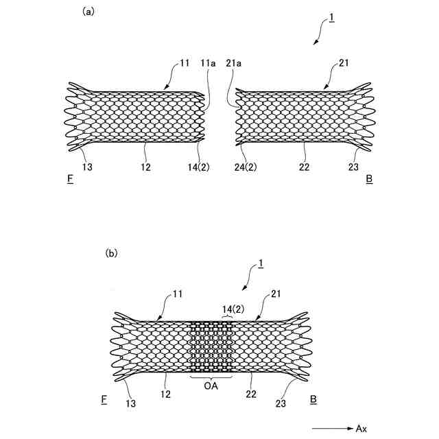 上記特許文献1等のステントは、軸方向に長尺な一本の構造をなしている。そのため、ステント留置術においては、生体管腔の病変部位の管軸方向長さに近い軸方向長さを有するステントが選択されて留置される。