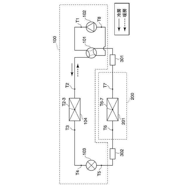 特許文献1に開示されている従来技術では、室外機及び室内機の空調負荷が一定でかつ、圧縮機周波数が一定となり冷凍サイクルが安定した場合には冷媒量を推定することが可能である。しかしながら、1日を通して外気温が一定でないこと、室内にいる人の人数、または室内にいる人の活動状態などによって室内機にかかる空調負荷が変化するため、空調負荷が一定となる環境は現実的にはない。よって、従来技術では、実使用環境における冷媒量の推定が困難であり、冷媒量を推定するためには特殊な運転が必要であった。
