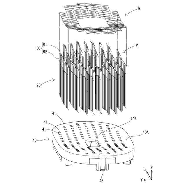 前記複数のピンの先端を繋げた仮想面は、前記本体部の表面に向けて凹んでおり、