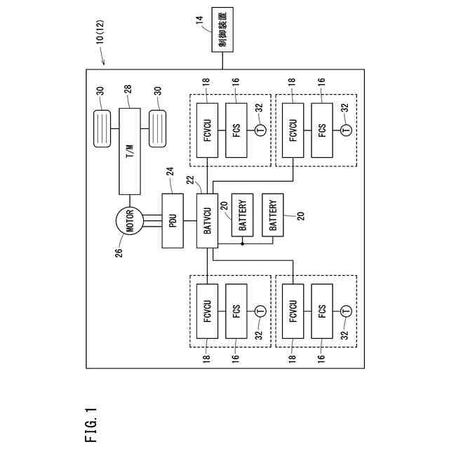 図1は、実施形態に係る電源システム10の構成の一例を示すブロック図である。ここでは、電源システム10は、燃料電池の発電電力により推進(走行)する燃料電池自動車12(FCV:fuel cell vehicle)として説明される。但し、電源システム10は燃料電池自動車12に限られない。電源システム10は、例えば船舶、航空機、ロボット等、車両以外の移動体でもよい。電源システム10は、事業用設備や家庭に設置される定置型電源でもよい。