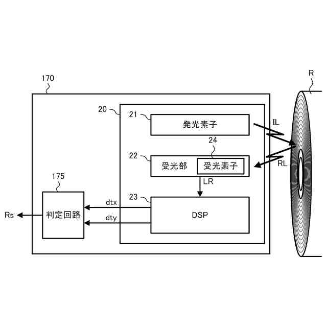 前記ロール体の回転軸と交差する前記ロール体の検出面に光を照射し、反射した光を検出する光学式トラッキングセンサーと、