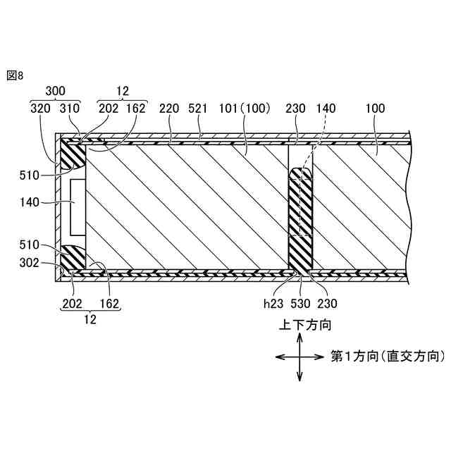 上部接着部及び下部接着部の変形例を概略的に示す断面図である。