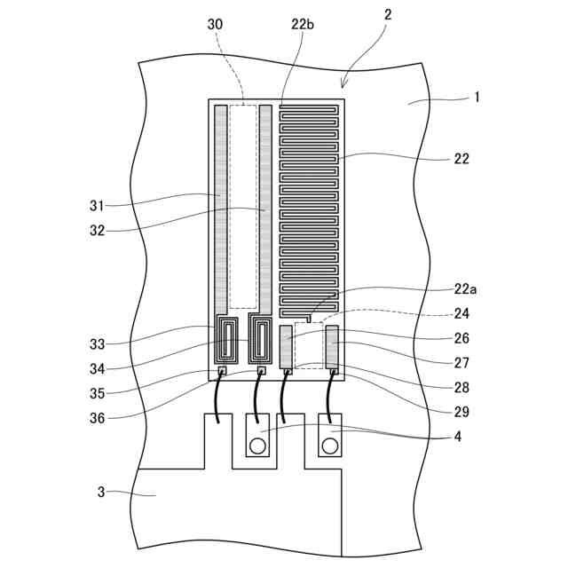 前記第1ミアンダパターンと前記第2ミアンダパターンは、異なる面間で対向して配置されており、