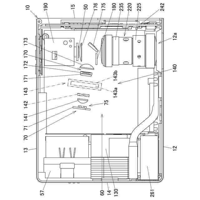 本発明の他の実施形態に係る投影装置の要部の内部構造を側面から見た模式図である。