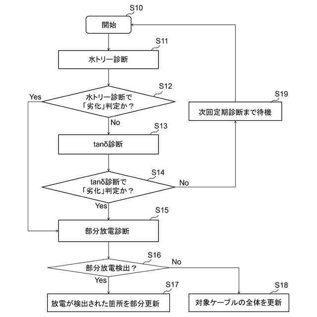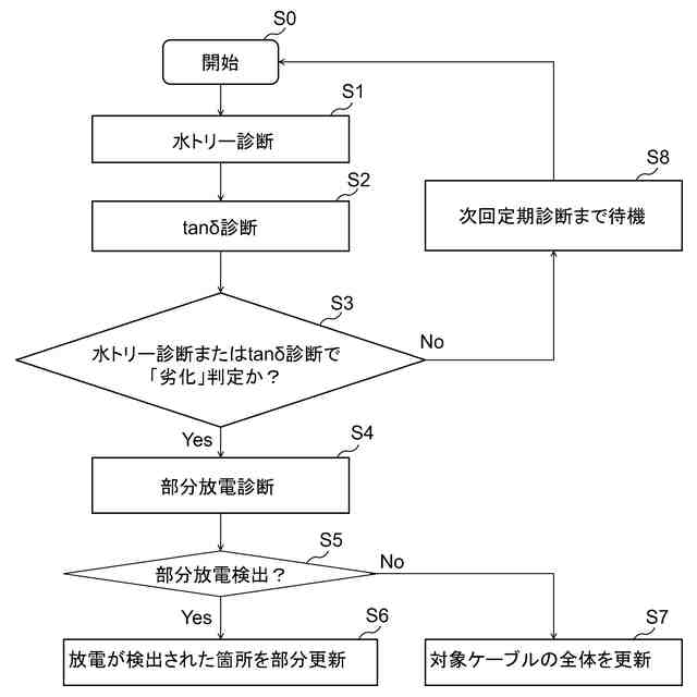 前記水トリー診断および前記誘電正接診断の少なくともいずれか一方で高圧ケーブルに劣化が生じていると診断されたとき、前記部分放電診断工程を実施し、