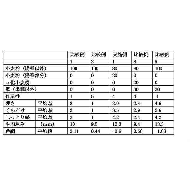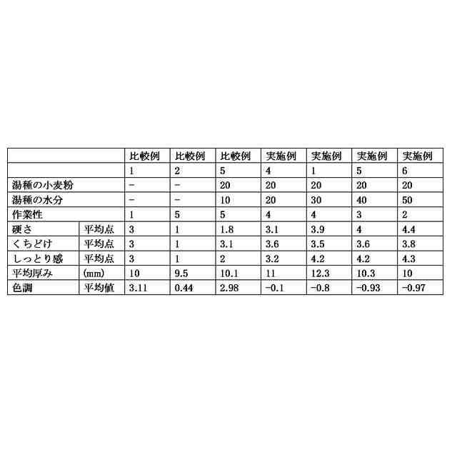 〔2〕(1)穀粉原料と水分とを混合して湯種を得る工程であって、水分の量が穀粉原料100質量部に対して100~250質量部であり、水分の温度が穀粉原料の糊化開始温度以上である、工程と、