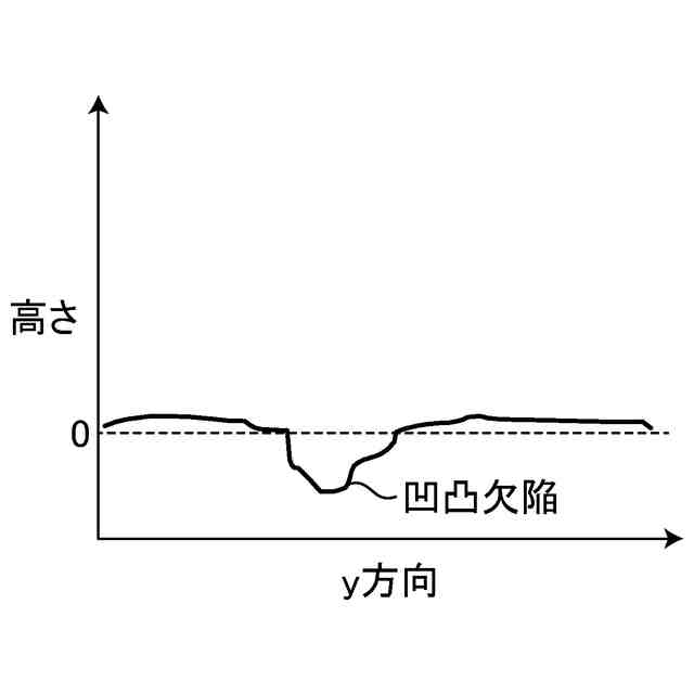 光切断方式の光学的な検査方法では、搬送される被測定物の厚み変化が凹凸欠陥の深さより十分に大きい場合、得られた凹凸データの絶対値から凹凸欠陥を検出することが困難になる。このため、凹凸欠陥を検出するためには、得られた凹凸データと比較するための基準となる凹凸データが必要となる。ところが、凹凸データに影響を与える要素には、被測定物の厚み変化以外にも被測定物の反りや搬送中のガタツキといった要素があるので、基準となる凹凸データを予め用意することはできない。このため、基準となる凹凸データは、得られた凹凸データに対して移動平均フィルターや荷重移動平均フィルターを適用することによって疵のような特異点を取り除くことにより生成されている。しかしながら、この場合、平均するデータ点数やデータ点毎の重み付けの最適化を人手で実施する必要がある。また、被測定物の幅や長さが変化する場合には、それに対応した最適条件を別途設定する必要がある。このため、被測定物の厚み変化が大きい場合や被測定物の反りや搬送中のガタツキの影響がある場合であっても、多くの労力を要することなく凹凸欠陥を精度よく検出可能な技術の提供が期待されていた。