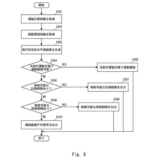 前記予測部は、前記移動体の複数の前記計画経路における飛行安定性の予測結果を生成し、