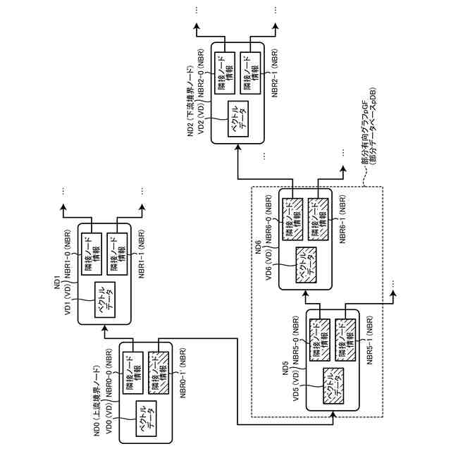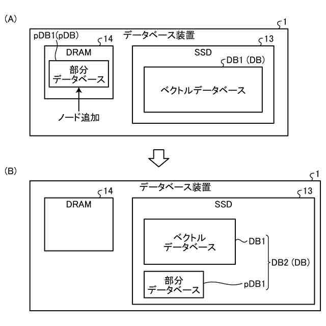 DiskANNによれば、ベクトルデータの群がストレージデバイスに配置され、ベクトルデータの群に対応した有向グラフを規定するインデックス情報が揮発性メモリに配置される。そして、インデックス情報によって規定された有向グラフに沿って、クエリに最も近いベクトルデータが探索される。