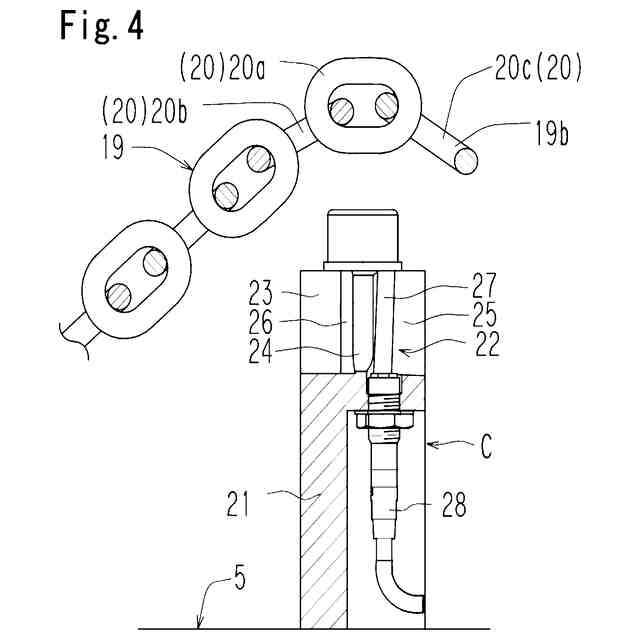 図4は、図3に類似する図であって、上記吸着対象物の落下防止装置からリンクチェーンが離脱された状態を示す図である。