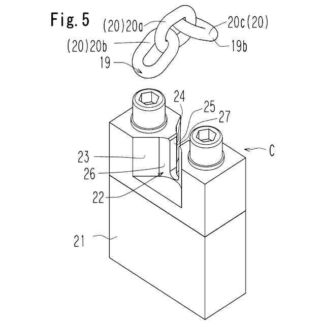 前記連結機構(C)のブロック(21)の上部に設けられると共に、複数の前記リンク(20)のうちの1つのリンクである取付リンク(20a)が挿入可能となっている装着溝(22)と、