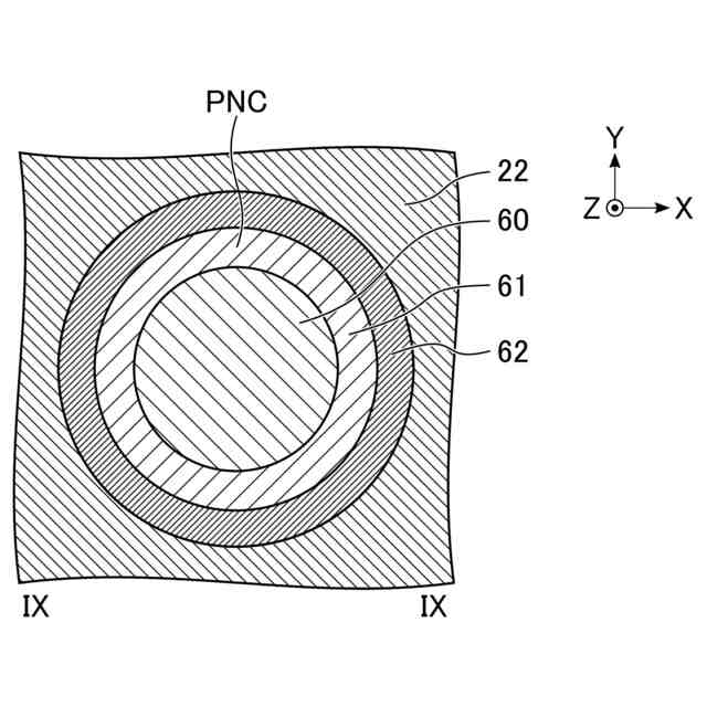 実施形態に係るメモリデバイスが備えるPNコンタクトの断面構造の一例を示す、図7のIX-IX線に沿った断面図。