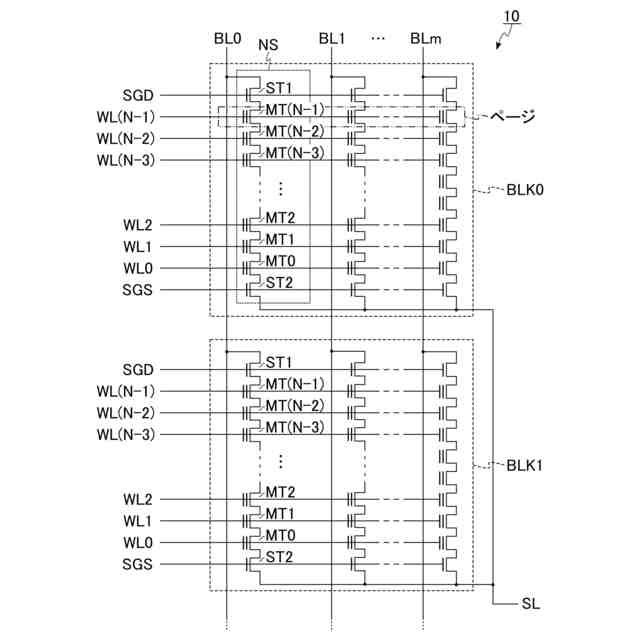 メモリセルアレイ10は、複数のブロックBLK0~BLKn(“n”は、1以上の整数)を含む。ブロックBLKは、複数のメモリセルの集合である。ブロックBLKは、例えば、データの消去の単位に対応する。ブロックBLKは、複数のページを含む。ページは、データの読み出し及び書き込みが実行される単位に対応する。図示が省略されているが、メモリセルアレイ10には、複数のビット線BL0~BLm(“m”は1以上の整数)と、複数のワード線WLとが設けられる。各メモリセルは、例えば、1つのビット線BLと1つのワード線WLとに関連付けられる。