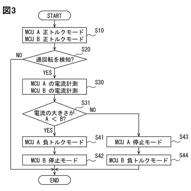 過回転検出部によって過回転が検出されている時には、負トルク制御部によって負トルクモードでの制御が実行される。