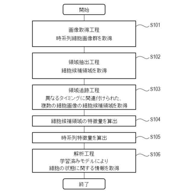 該学習済みモデルは、学習用細胞より取得した時系列細胞候補領域群に関する情報および細胞の状態に関する情報に基づいて、