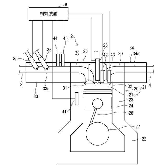 また、特許文献2に開示されるような従来のアンモニア混焼エンジンでは、燃焼室内での混合気を適切に燃焼させるために、非アンモニア燃料の噴射時期を進角したり、噴射回数を多くしたりすることで、非アンモニア燃料への着火性を高くしている。しかしながら、アンモニア混焼エンジンでは、水素等の非アンモニア燃料を混合することでアンモニアを含む混合気の着火性が向上するが、過剰に水素を混合した場合、アンモニアを含む混合気の着火性が必要以上に高くなり、過早着火等の異常燃焼が発生し、安定して運転させることが困難である。そのため、従来のアンモニア混焼エンジンでは、アンモニアと水素との混合気を、良好な排気ガス性状で安定して燃焼させることが困難である。