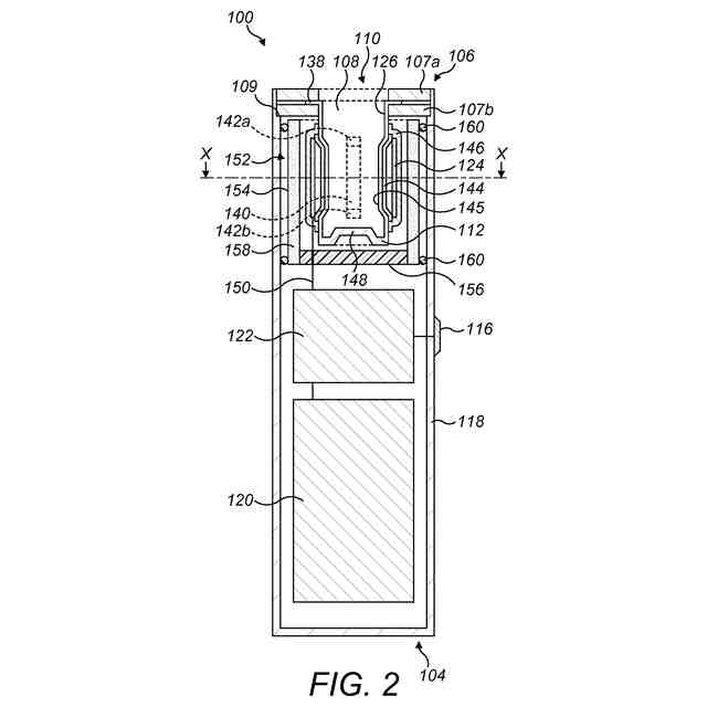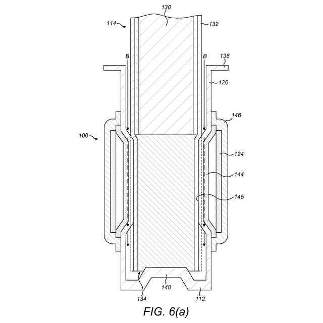 前記開放端(110)と前記基部(112)との間の側壁(126)と、を備え、