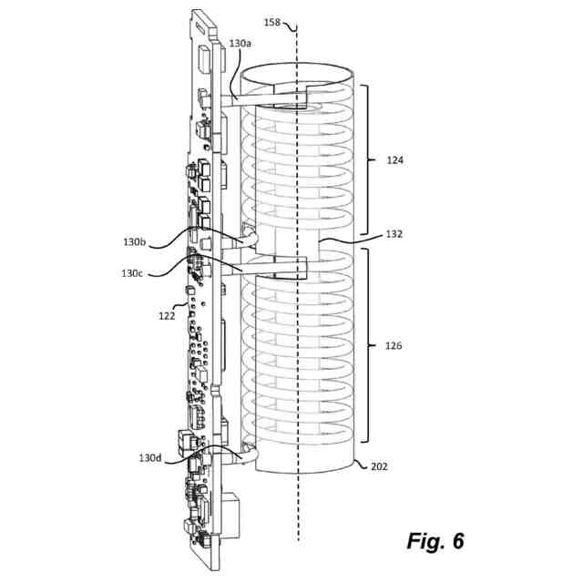 エアロゾル供給デバイス内に配置された例示的な磁気シールド部材の斜視図である。