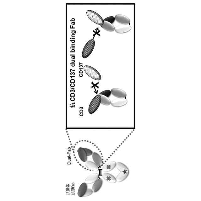 従来技術の二重特異性抗体は、両方の抗原、すなわち、第1の抗原であるがん抗原(EpCAM)および第2の抗原であるCD3εに、FcγRへの結合と同時に結合し得るため、FcγRおよび第2の抗原であるCD3εに同時に結合することによって引き起こされるこのような有害反応は、その分子構造的に回避することができない。
