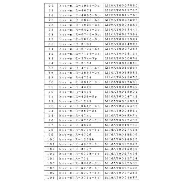 特許文献1には、血清中のmiR-663a、miR-92a-3p、miR-575